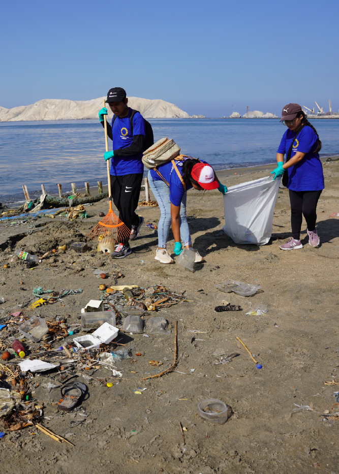 Limpieza de la bahía de Chimbote: en coordinación con la Municipalidad Provincial del Santa, recogemos residuos de la playa La Caleta.